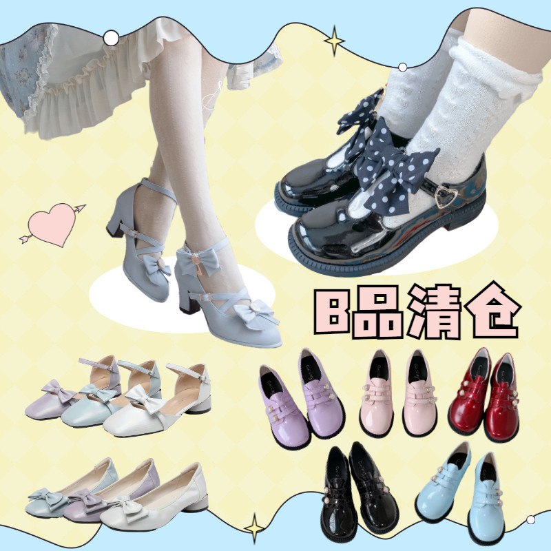 樱桃汽水原创设计B品浅口圆头低跟珍珠扣带蝴蝶结铆钉lolita单鞋热门设计联盟服务商
