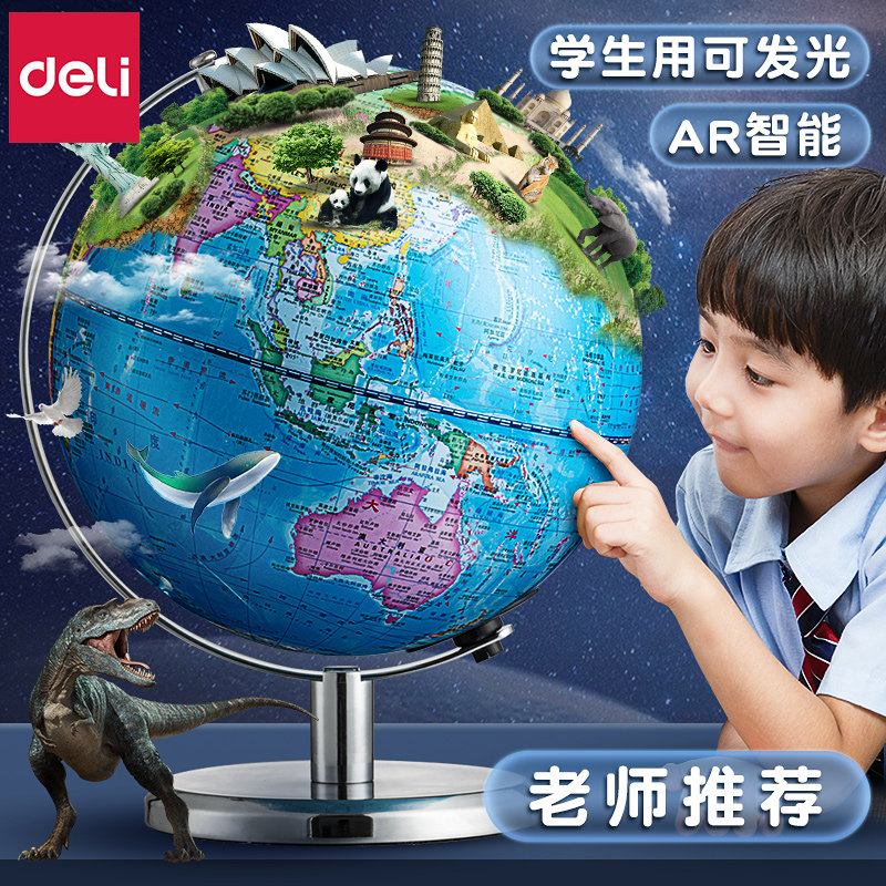 得力ar智能地球仪3d立体磁悬浮儿童启蒙初中生正版学生用大杭凸摆件20cm发光带灯小学生小型教学世界地图热门设计联盟服务商