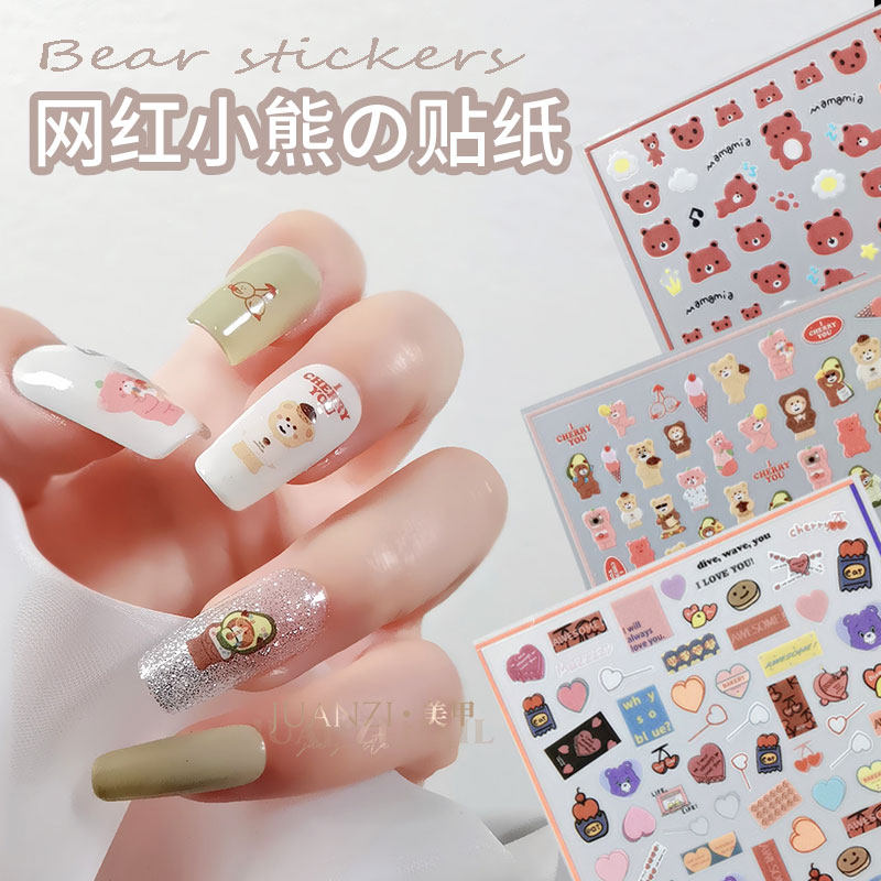 网红美甲贴纸 小熊可爱卡通人物爱心防水持久小清新 仙女指甲贴花热门设计联盟服务商
