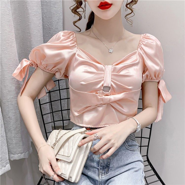 设计感辣妹高档复古淑女超仙泫雅风甜美粉色上衣新款丝滑缎面衬衫热门设计联盟服务商